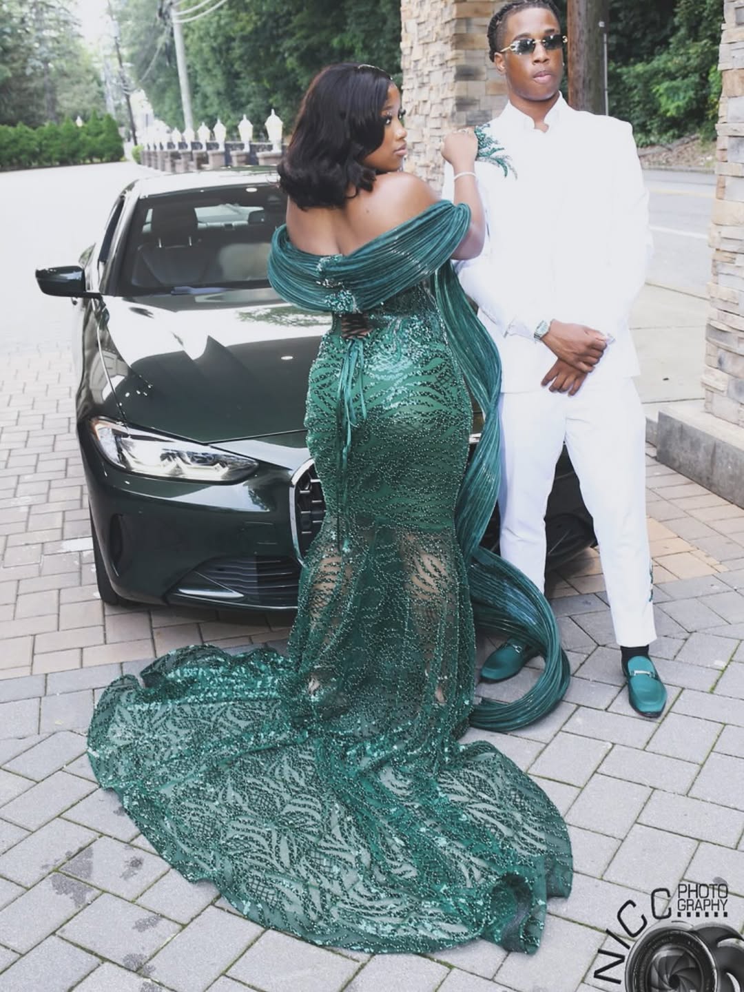 Luxury Black Sequin Mermaid Prom Dress – Illusion Corset Bodice with 3D Beaded Lace & Off-the-Shoulder Detail | 2026 Gothic Glamour Evening Collection