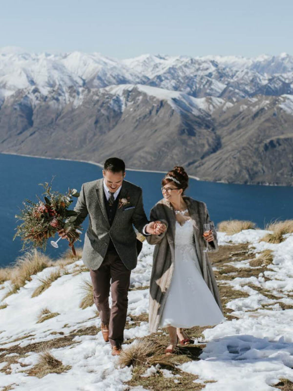 Elegant Half Sleeves V-neck Lace Boho Wedding Dress