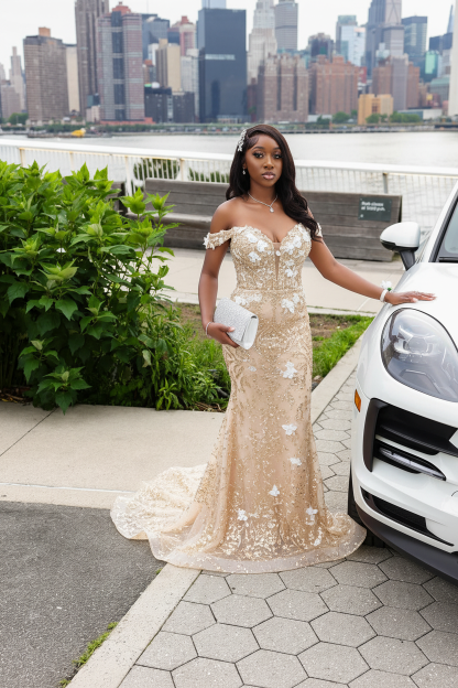 Representation matters. This gown is modeled by and designed for women of all shades to feel absolutely stunning. Celebrate your beauty, your curves, and your moment to shine.