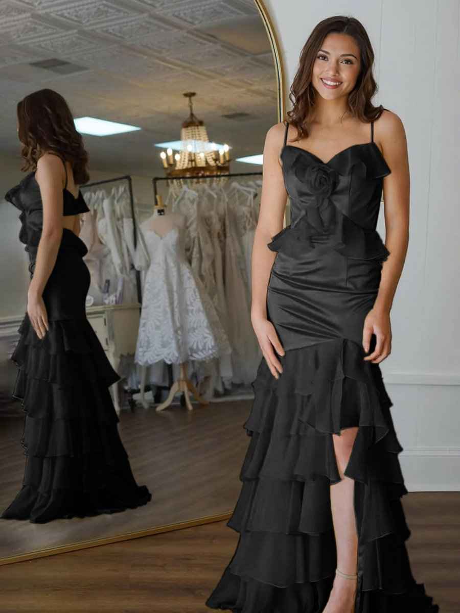 Yellow Mermaid Ruffle Chiffon Long Prom Dress with Flower