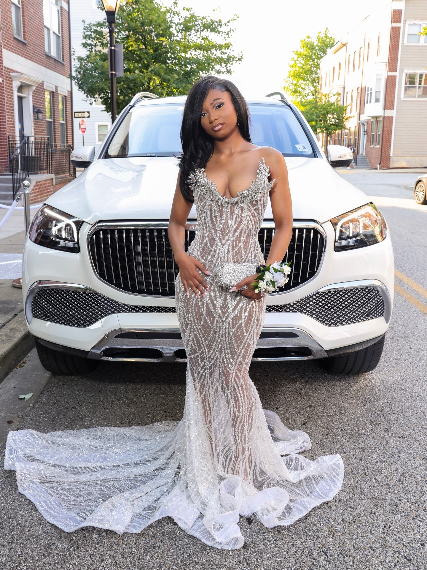 Representation matters. This gown is modeled by and designed for women of all shades to feel absolutely stunning. Celebrate your beauty, your power, and your moment to shine like the silver goddess you are.