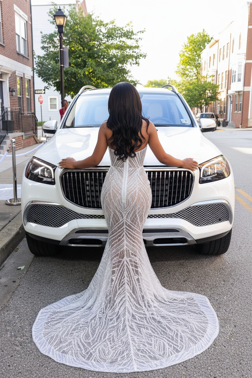 This isn't just a gown - it's a transformation, a showstopper, and a memory maker. The combination of off-shoulder crystal straps, sheer illusion bodice, intricate geometric beadwork, and dramatic cathedral train ensures you'll be the most unforgettable person at any event. This dress is designed for the woman who doesn't just attend events - she transforms them with her goddess energy. The luxurious details photograph beautifully, making it perfect for creating those once-in-a-lifetime photos and lasting memories. When you wear this dress, you don't just look beautiful - you embody the power and grace of a silver goddess.