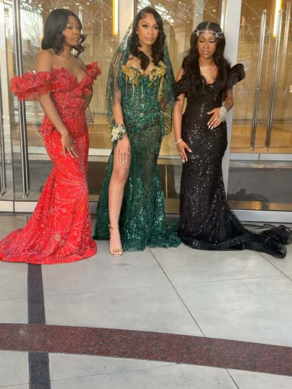 e??? This isn't just a prom dress a?? it's your Emerald Empress moment. The gold tassel bodice, all-over swirling botanical sequin embroidery, dramatic sheer cape, and show-stopping sweep train combine to create a look that is pure royalty. For the girl who was born to lead, who commands every room she enters, and who wants a prom entrance that will be talked about forever a?? this is your gown. Step into your emerald reign and rule the night! e???e???