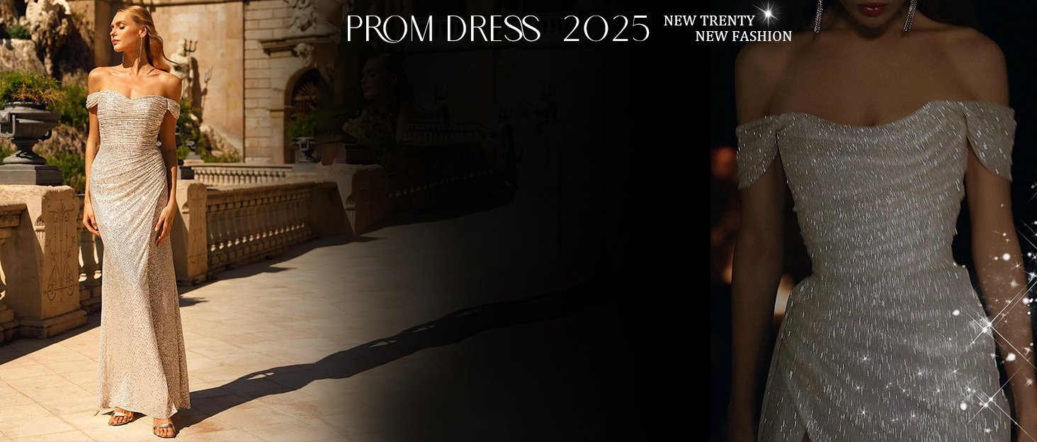 Off Shoulder Slit Sequin Prom Dresses 2025